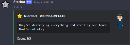 A user can be warned - if a warning role is specified, any user with warnings will automatically be given this role. If their warnings are cleared, the role will automatically be removed. You can adjust what happens when the max number of warnings is reached.